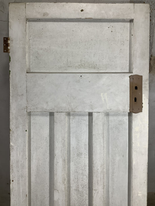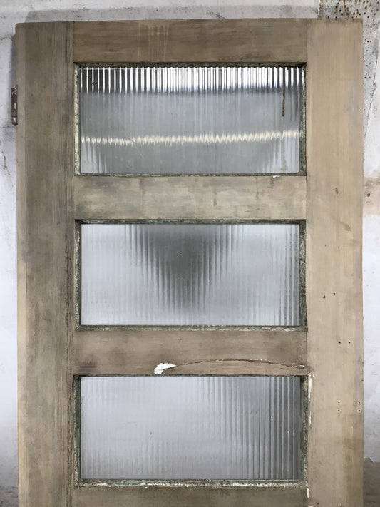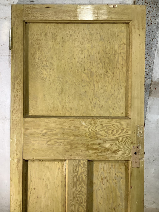 29 1/2"X 76 1/2" 1930s Internal Stripped Pitch Pine Three Panel Door 1over2