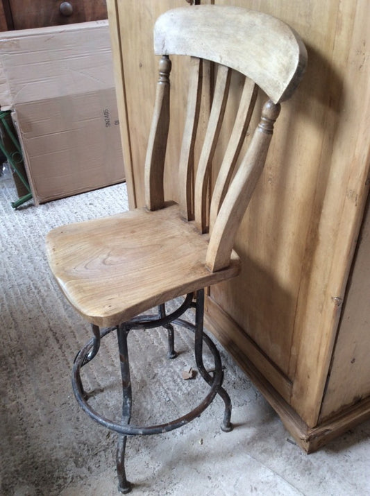 Interesting Old Elm & Beech Steel Slat Back Stool Chair With Metal Legs 42" High