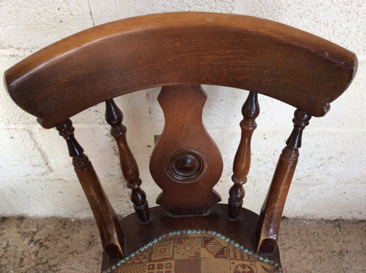 Lovely Old Reclaimed Dark Beech Chair Turned Spindle Legs Upholstered Seat