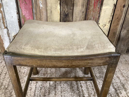 Low Oak Stool 17” With Soft Seat Pad With Four Square Legged Stool 1930’s Style