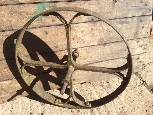Old Reclaimed Wrought Iron 4 Spoke Implement Wheelbarrow Wheel Ornament 19”