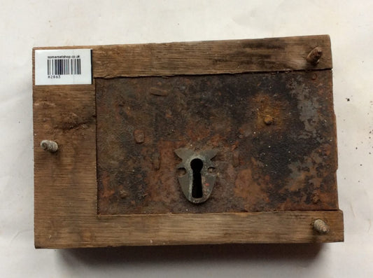 Reclaimed Old 8 1/4x5 3/8” Oak Casement Deadlock Wrought Iron Decoration
