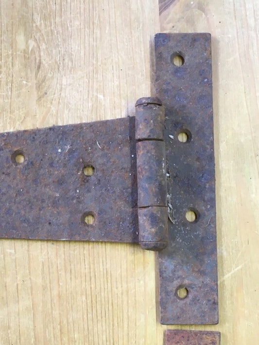 22" Big Long Pair Of Salvaged Old Wrought Iron Heavy Duty T Strap Door Hinges