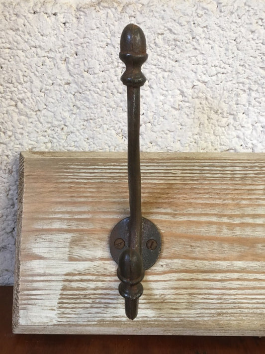 23 7/8” X 5 5/8” Lovely Old Reclaimed Pine Rack Of 3 Cast Iron Single Coat Hooks