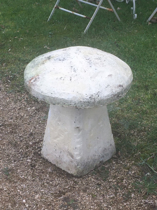 21" Reclaimed Weathered Concrete Garden Staddle Stone Mushroom Painted White