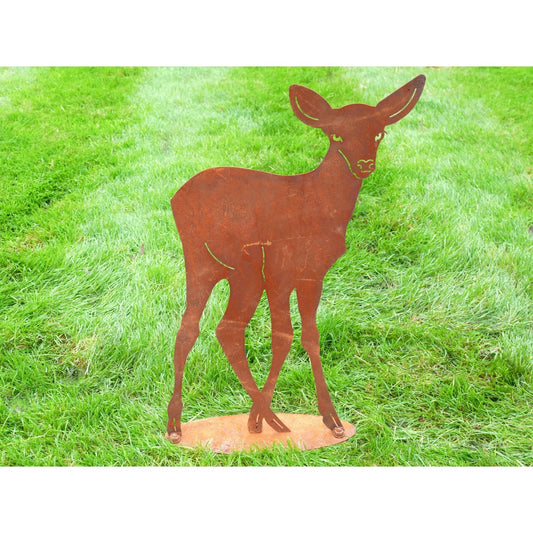 Rusted Steel Deer Doe Silhouette Garden Figure Free Standing