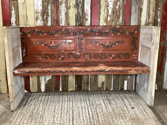 5'8" Old Rustic Hand Painted Pine Settle Pew Wooden