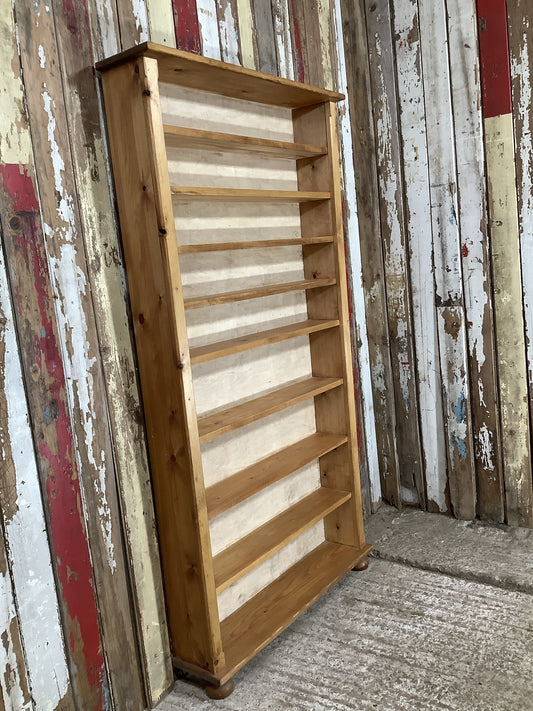 Tall Chunky Narrow Varnished Pine & Ply Bookcase 10 Shelves 5'8"H 2'11" W