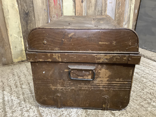 Rustic 1930s Tarnished Brown Metal Travel Trunk Toy Box Metal 1'2"H 2'2" W