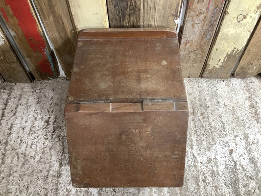 Antique Old Wooden Mahogany Coal Scuttle Box Bin With Sloped Lid With Liner