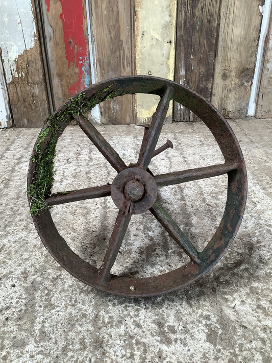 Old Cast Iron Metal 6 Spoke Machine Trolly Wheel