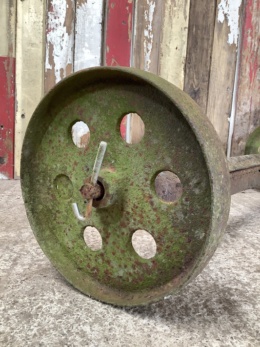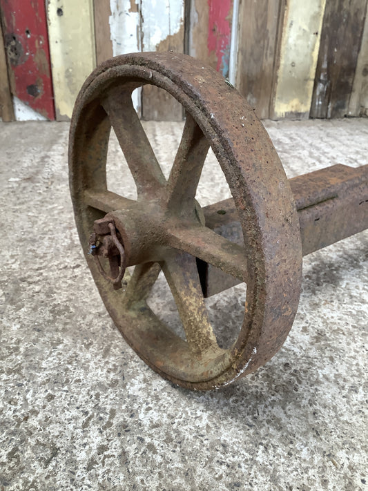 Old Cast Iron Metal Solid Centre Machine Trolly Wheel