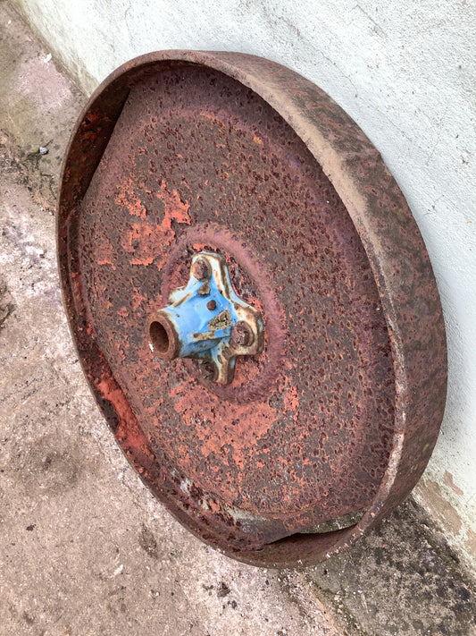 Old Reclaimed Rusty Metal Disc Machine Trolly Marker Wheel 1'7"H 0'2"x W