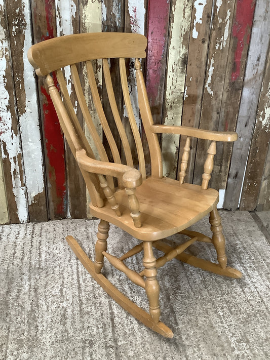 Tall Back Fiddle Solid Beech Rocking Carver Arm Chair Wooden 3'7"H