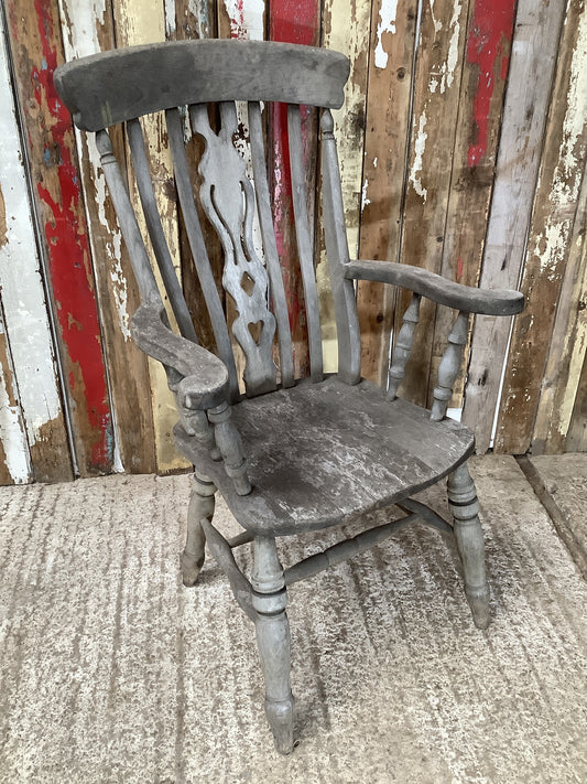 Old Weathered Farmhouse Solid Beech Fiddle Tall Back Carver Kitchen Arm Chair