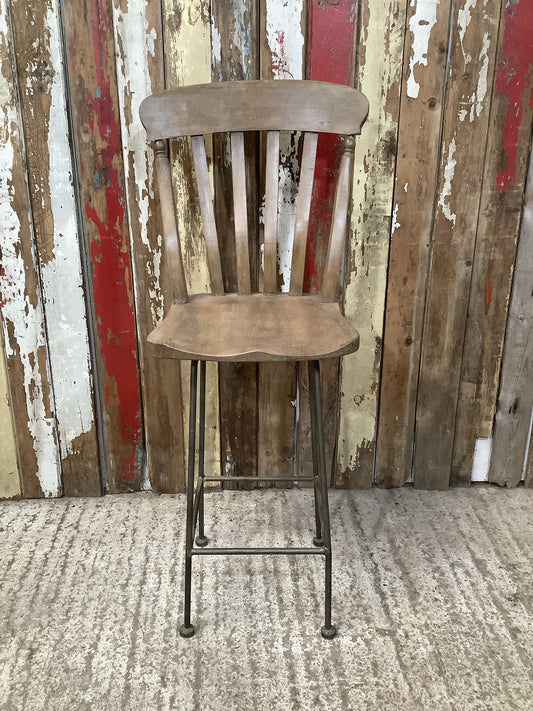 Stripped Farmhouse Old Waxed Beech Elm Slat Back Bar Stool On Metal Base 3'7"H