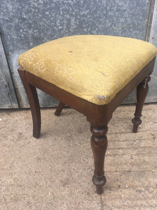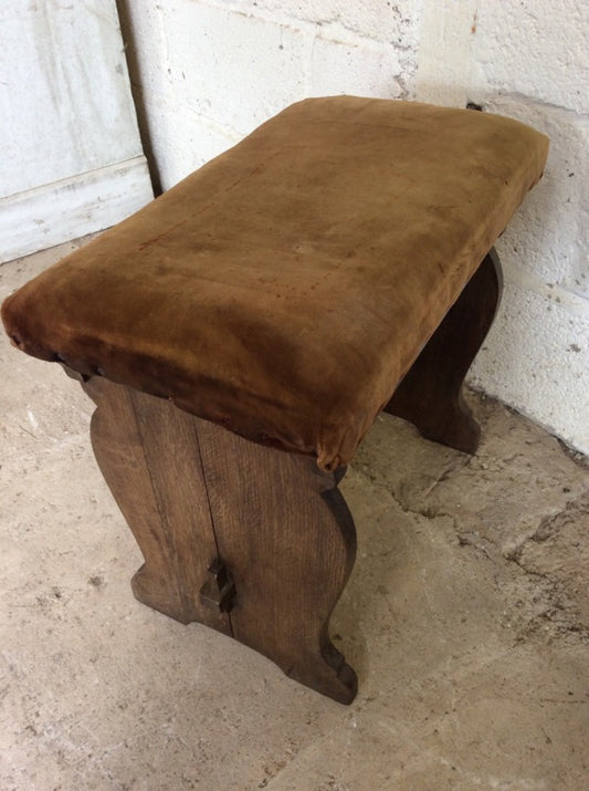 18 7/8” By 20 3/8” By 12 1/8” Reclaimed 1930s Upholstered Low Oak Stool