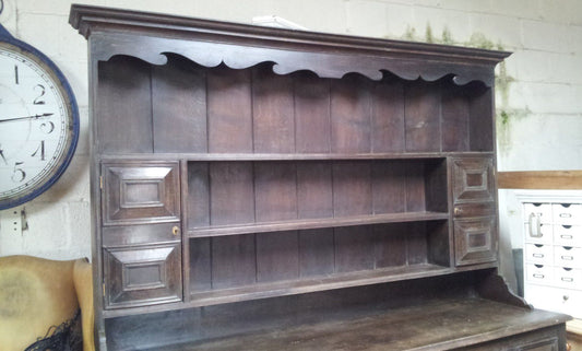 Reclaimed 6ft Solid Dark Oak Dresser With 3 Drawers & 2 Small Cupboards