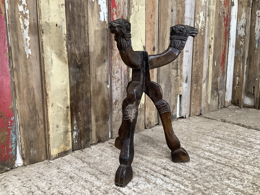 Interesting Stained Carved Camel Head Bowl Plate Stand Wooden Long 1'3" W