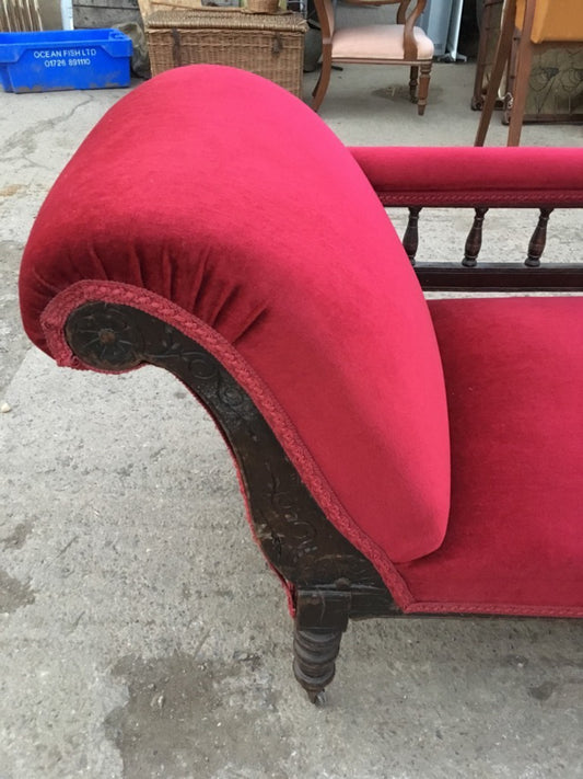 Antique Victorian Mahogany & Red Material Chaise Longue Sofa Chair TLC
