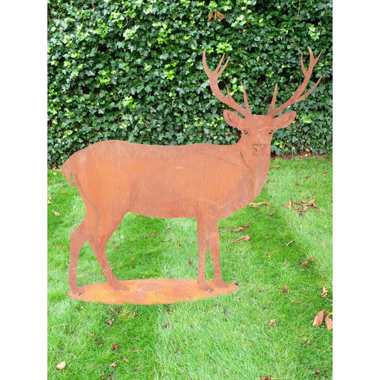 Large Rusty Deer Stag Silhouette Freestanding Garden Animal Metal 4'3"H 4'5" W