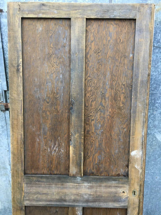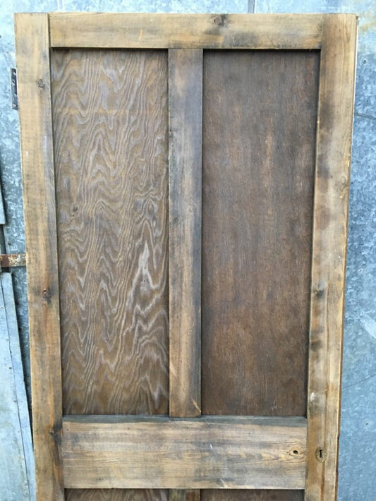 31 5/8"X 78 3/4" 1930s Internal Stripped Pitch Pine Three Panel Door 1over2