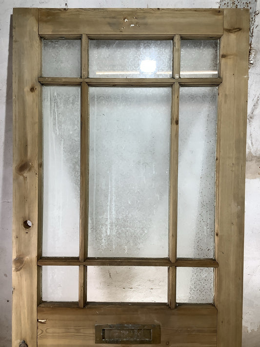 35 7/8"X 83 3/8" 1930s Exterior Glazed Stripped Pine Front Door Old Vestibule