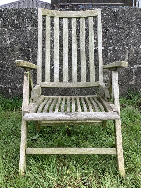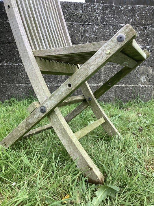 Folding Weathered Solid Teak Garden Single Slated Outside Chair 3'3"H
