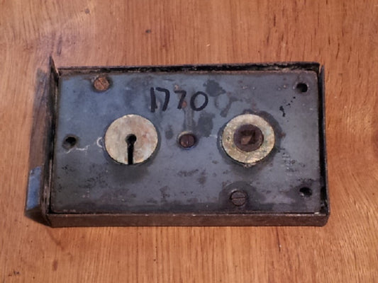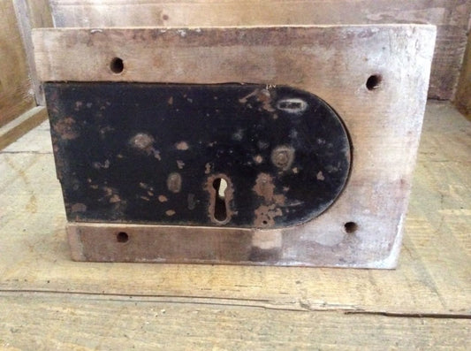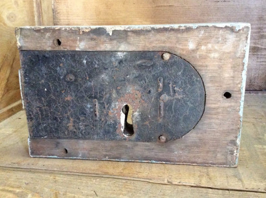 Unusual Victorian Door Rim Lock With Elm Casement & Steel Lock Right Hand 4¾”x7”
