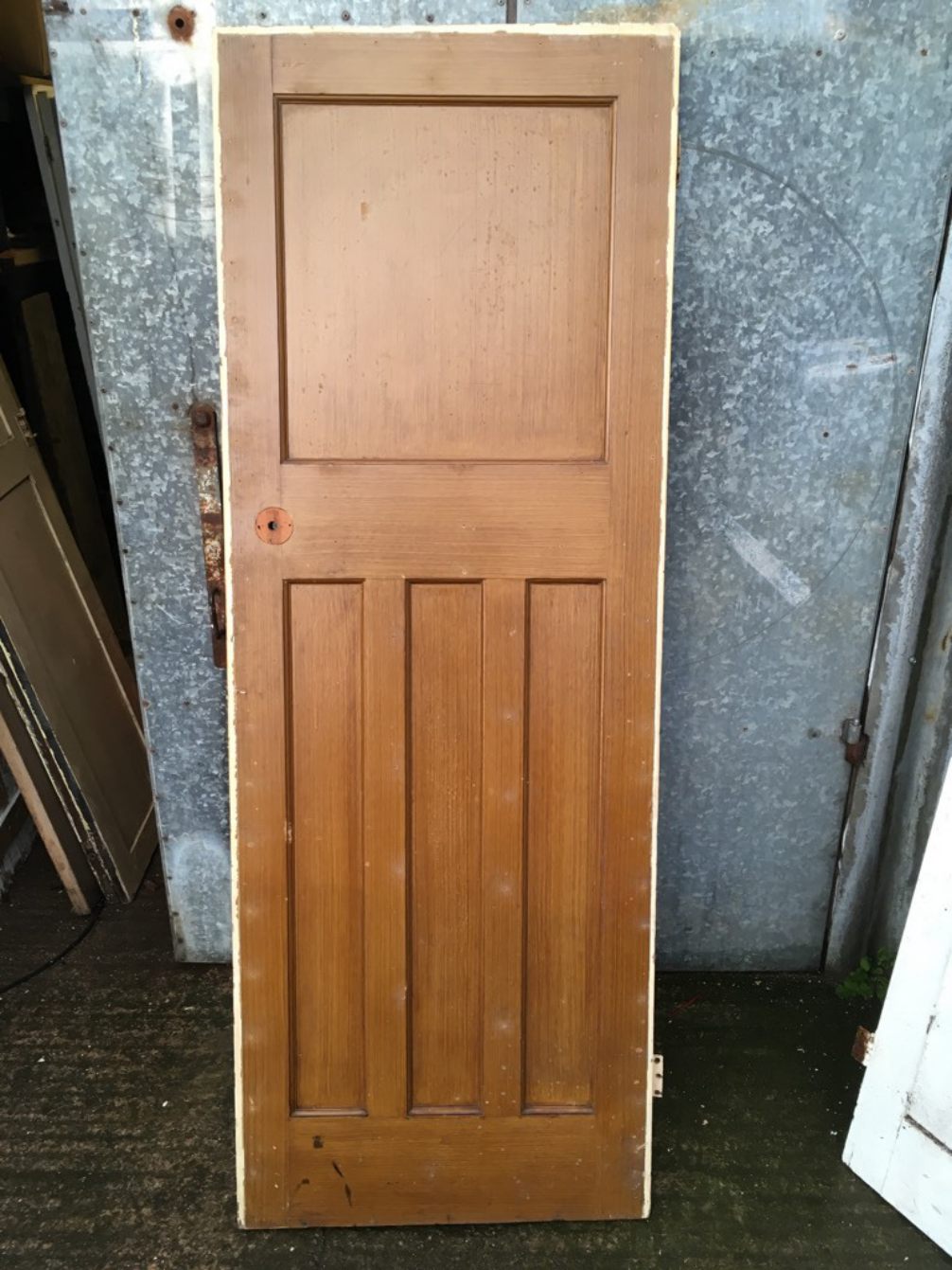 27 7/8x76 3/8” 1930s Painted Pitch Pine Four Panel 1 Over 3 Narrow Internal Door