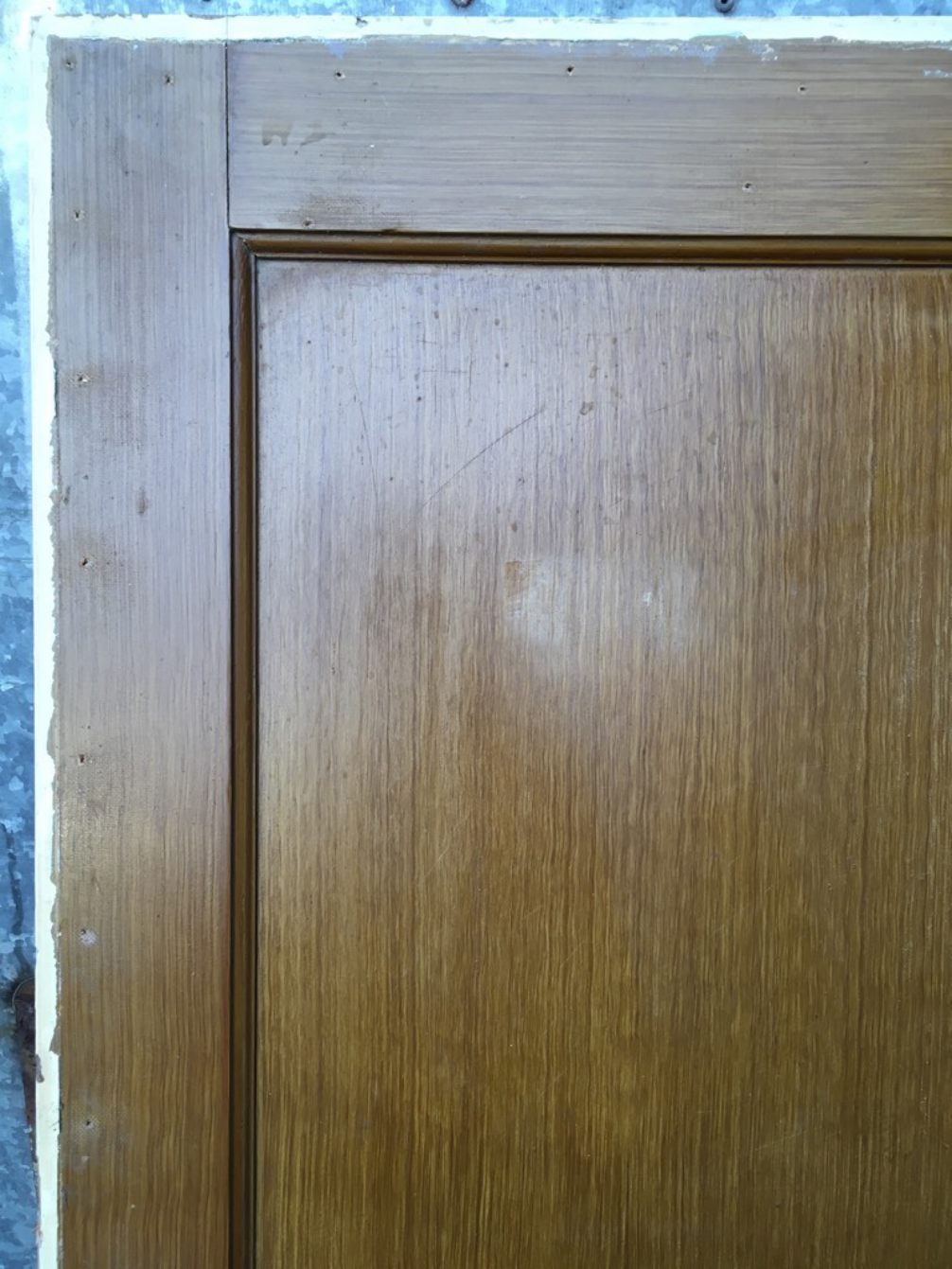 This internal 1930s four panel narrow door is painted off white and comb grain