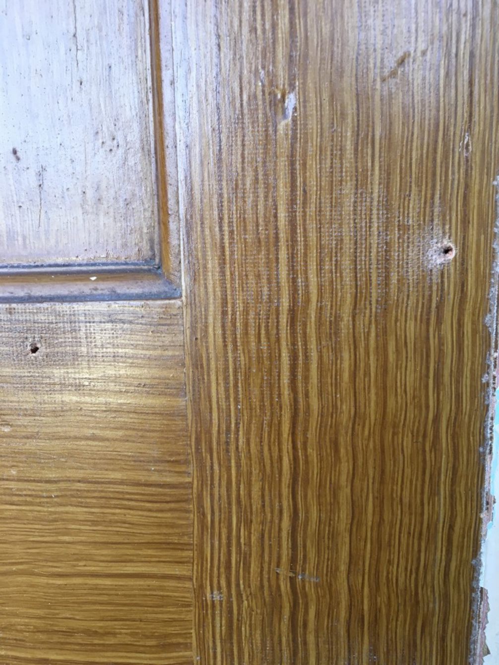 This door is painted. We offer a paint stripping service, please get in touch if you require this service