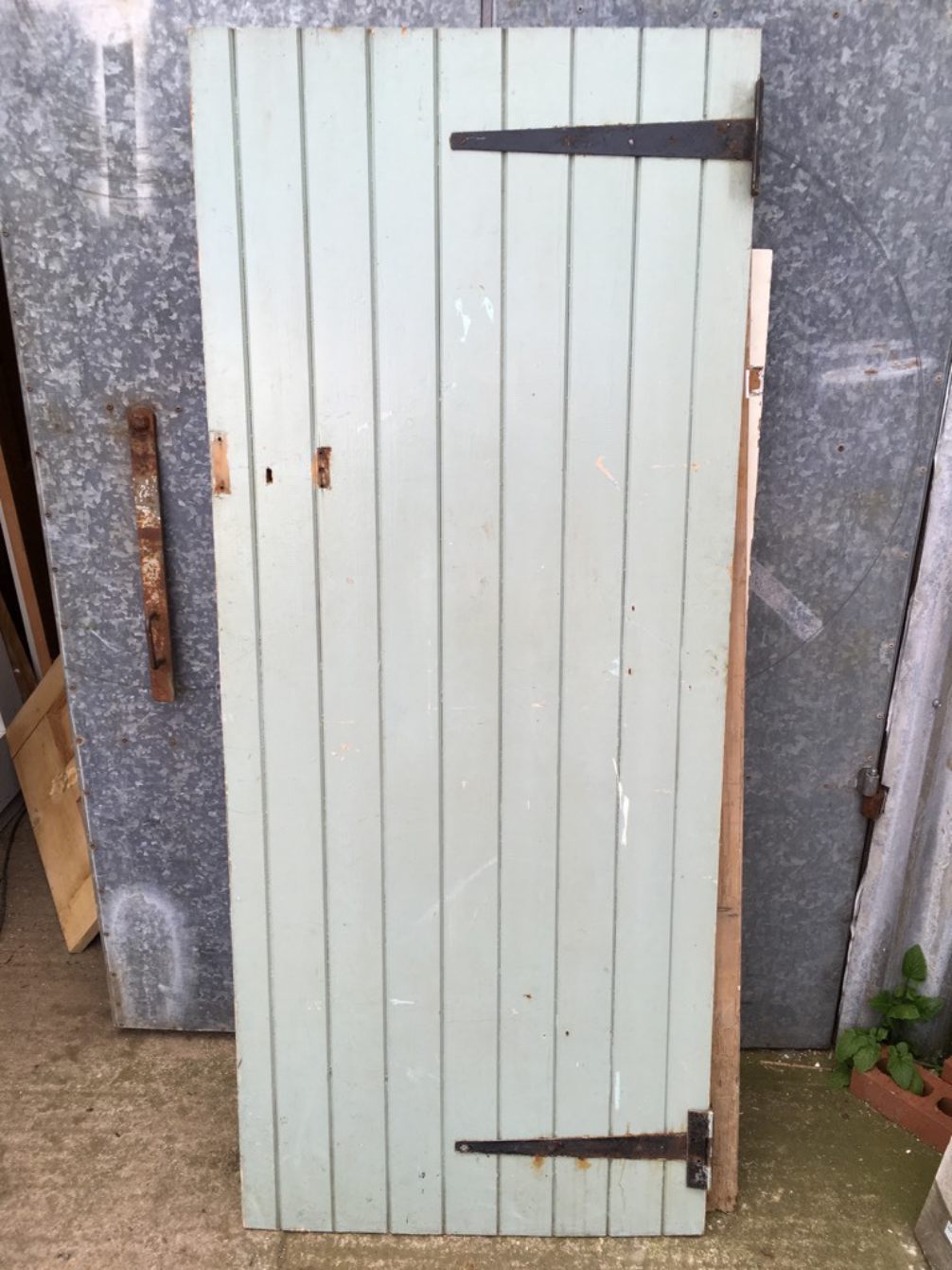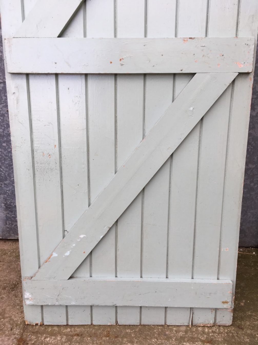 This reclaimed internal 9 plank, ledge & brace door is painted green