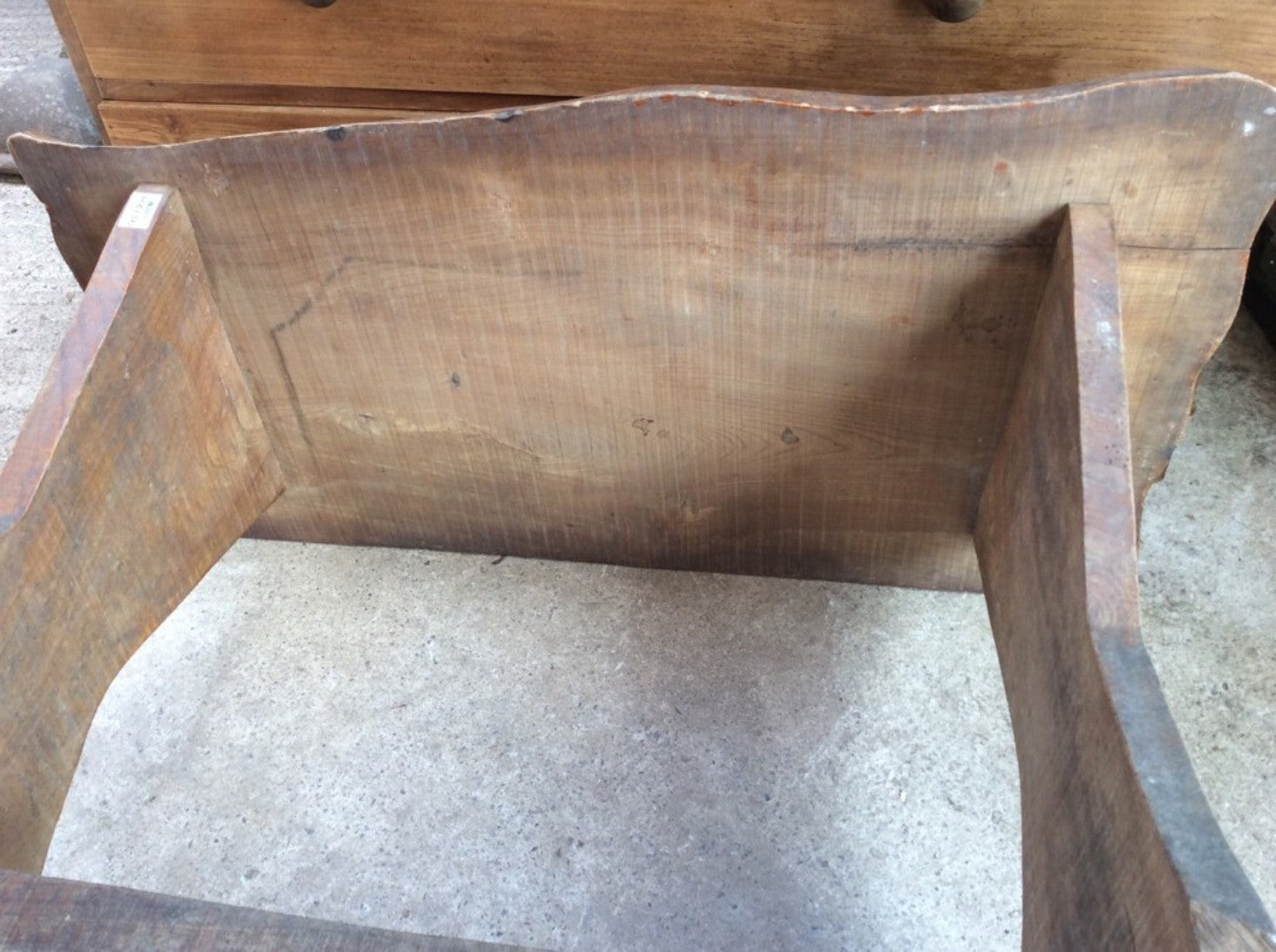 Useful rustic elm table with a waney top on 3 sides, straight edge the fourth
