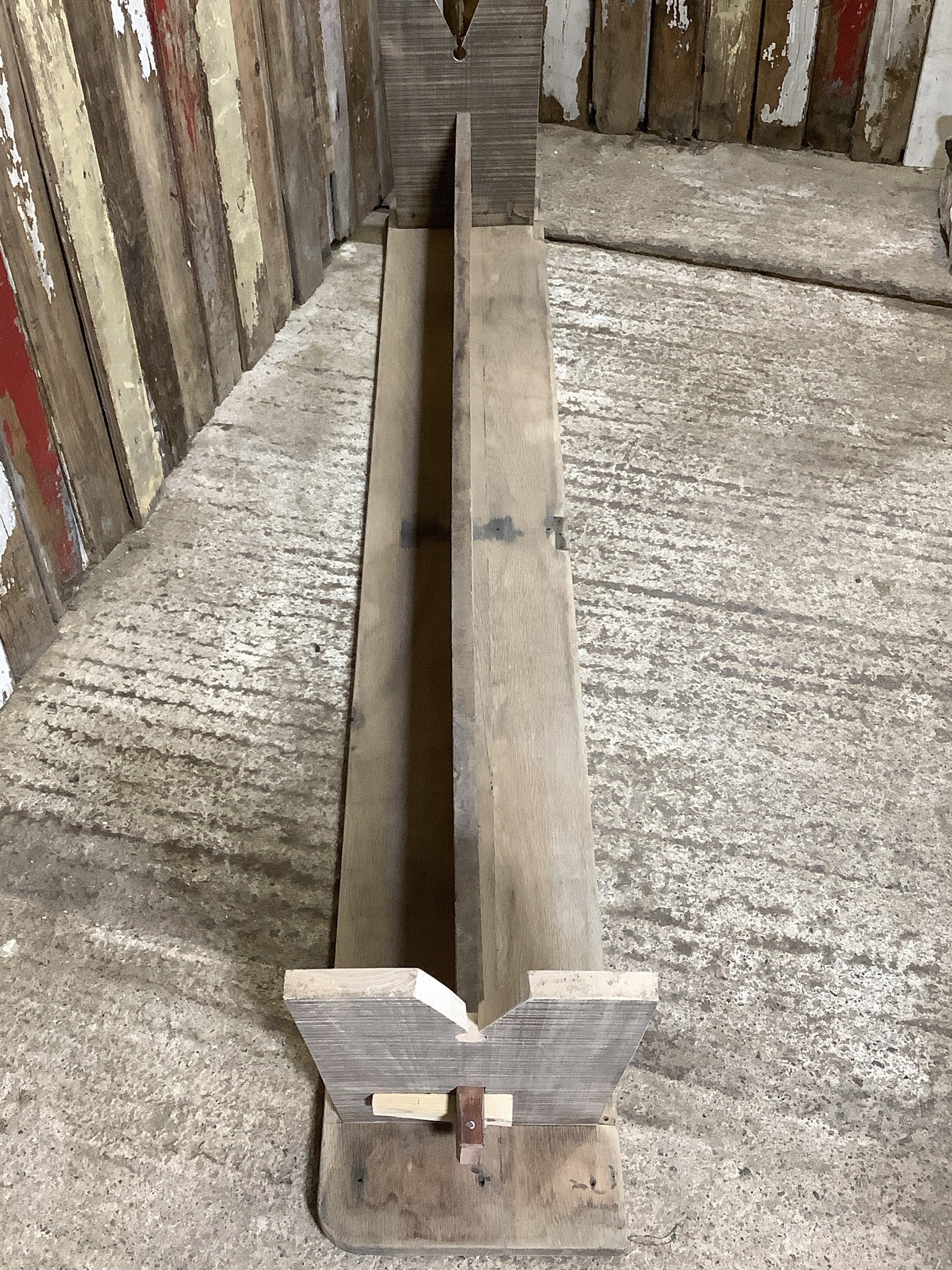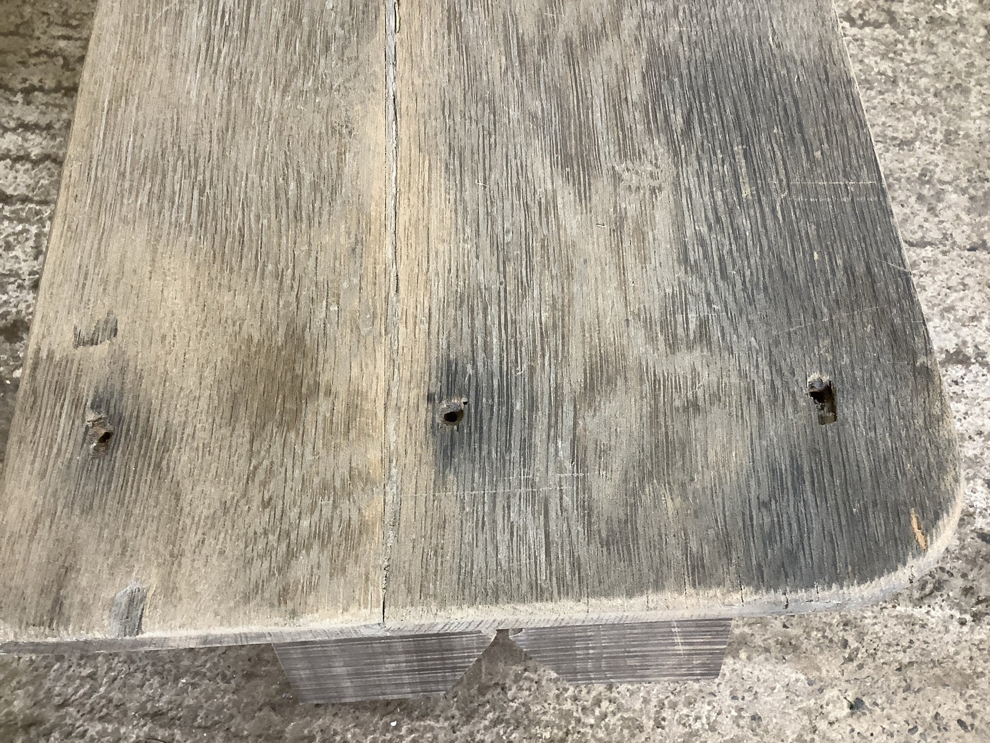 We think it was an old table extension of some sort as it has cut outs where the old hinges would of been