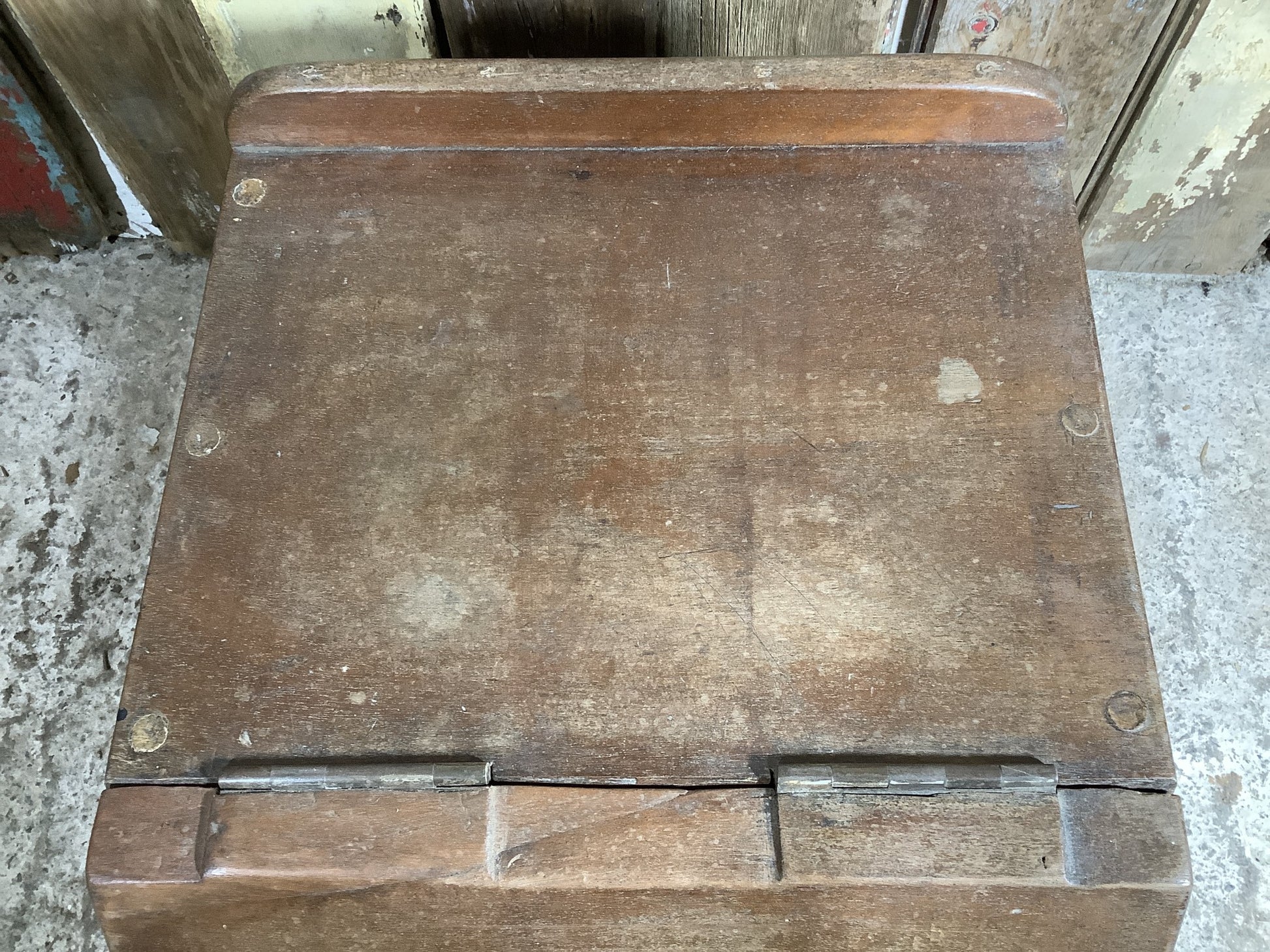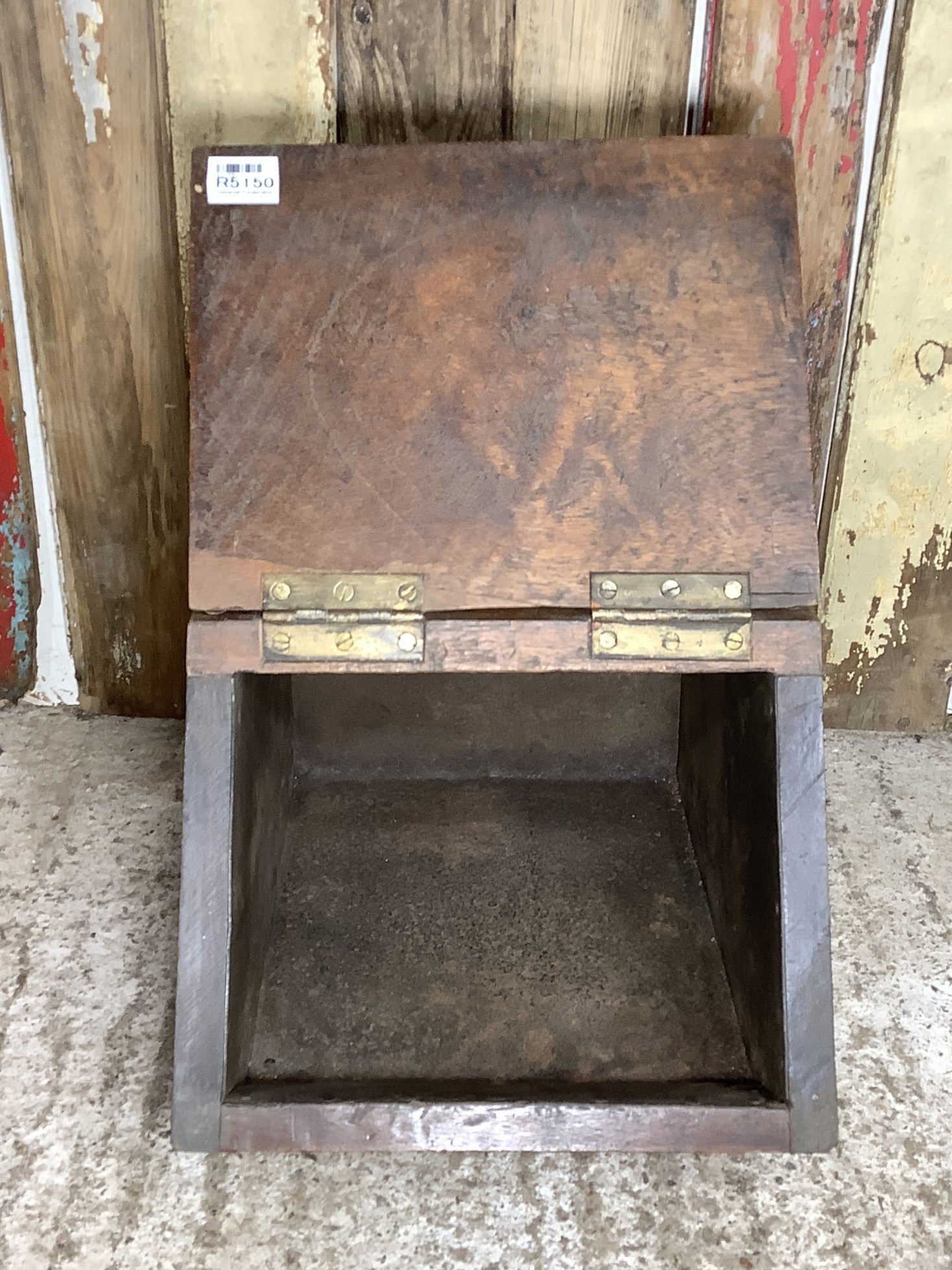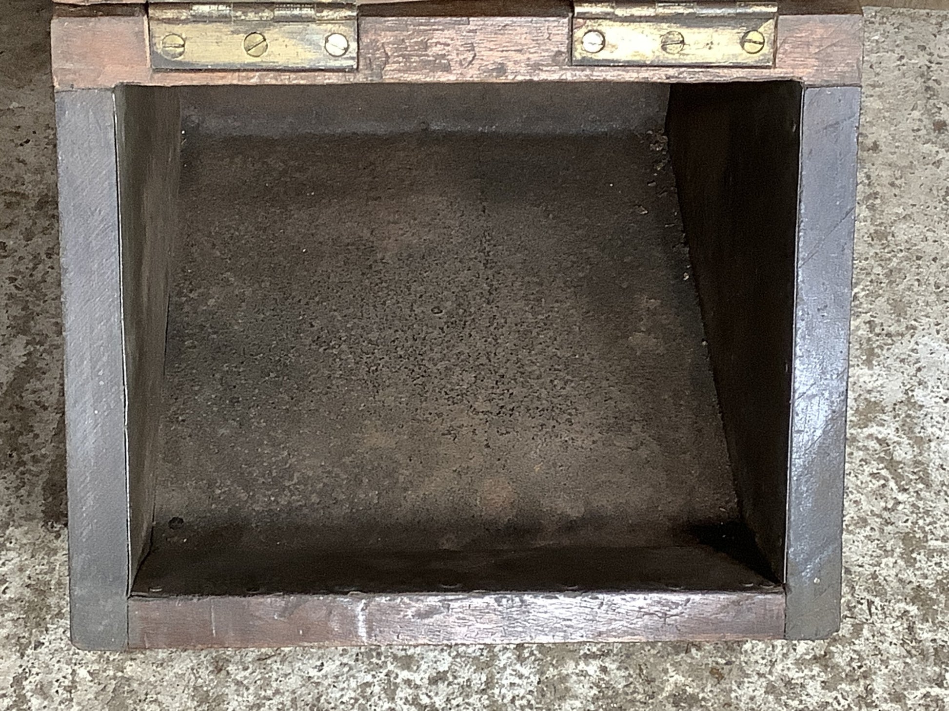 Antique Old Wooden Mahogany Coal Scuttle Box Bin With Sloped Lid With Liner