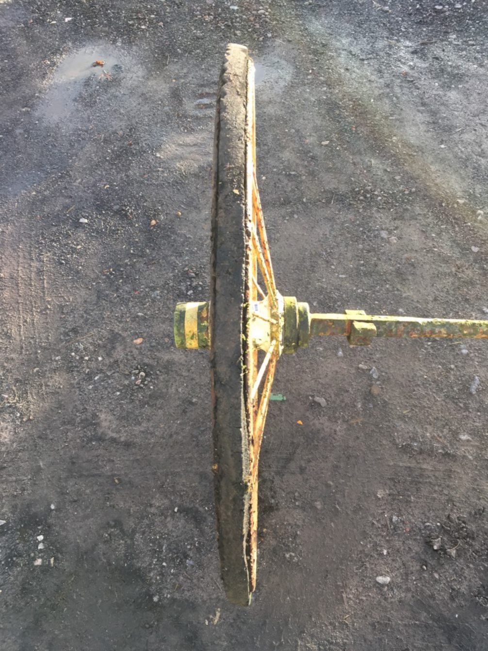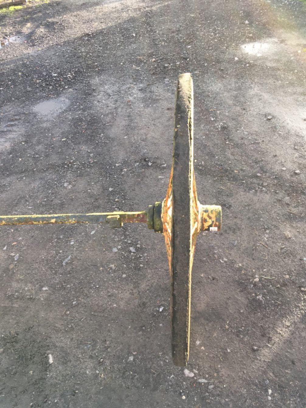 Interesting Pair Of Old Wrought Iron 3’ Spoked Wheels & Axle