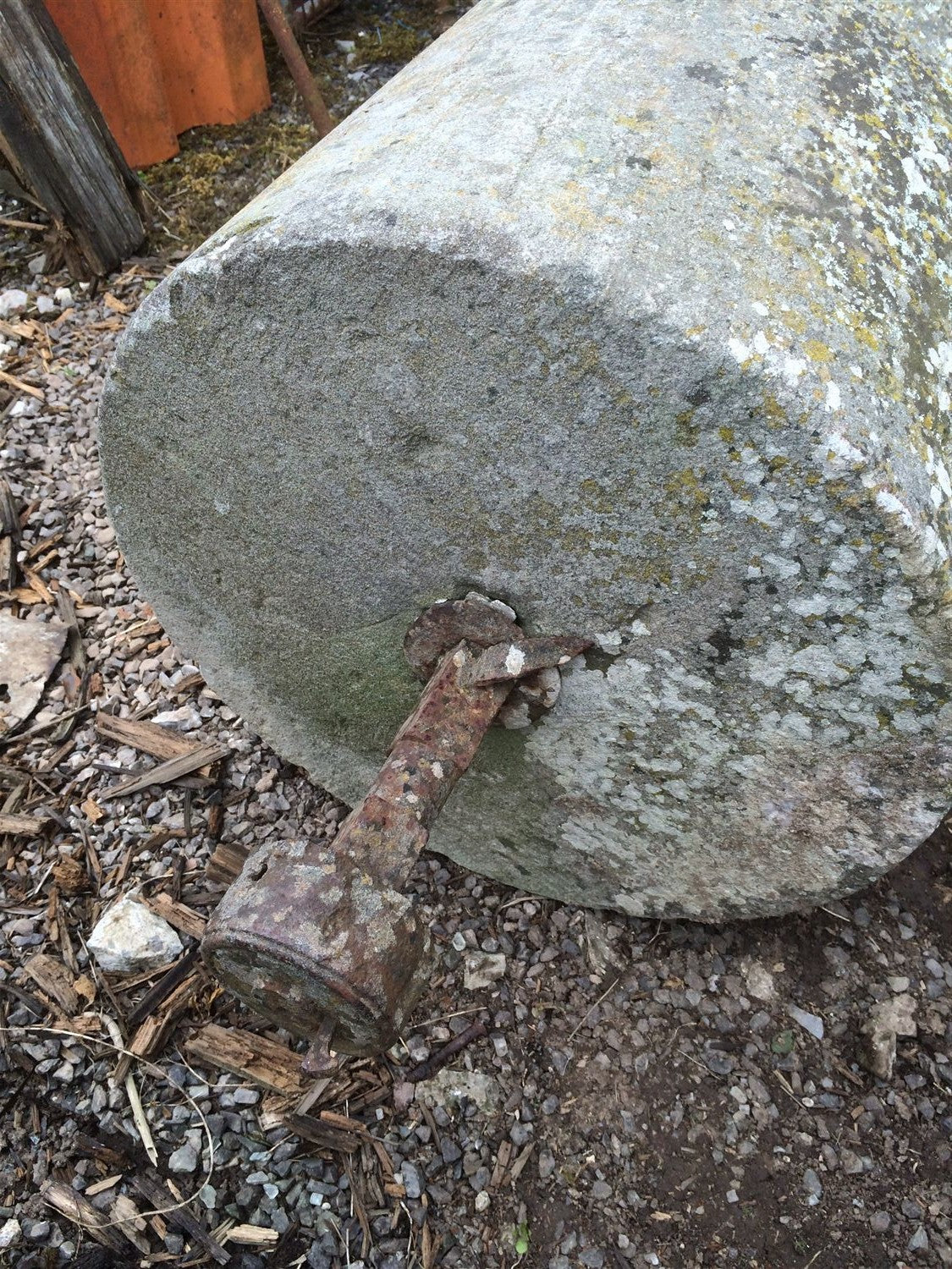 This millstone could be used as a garden ornament, turned into a garden roller or turned up on end as a column
