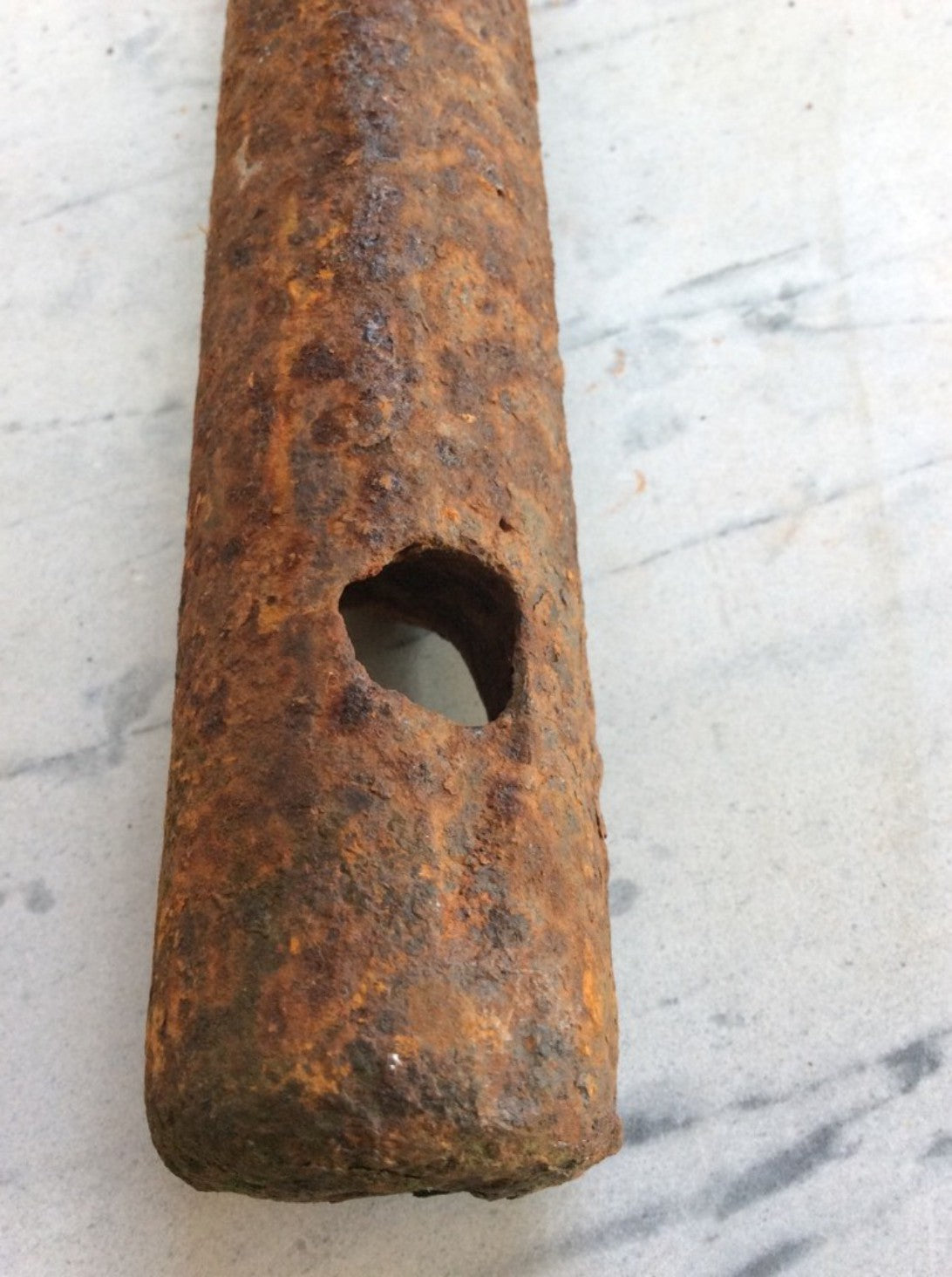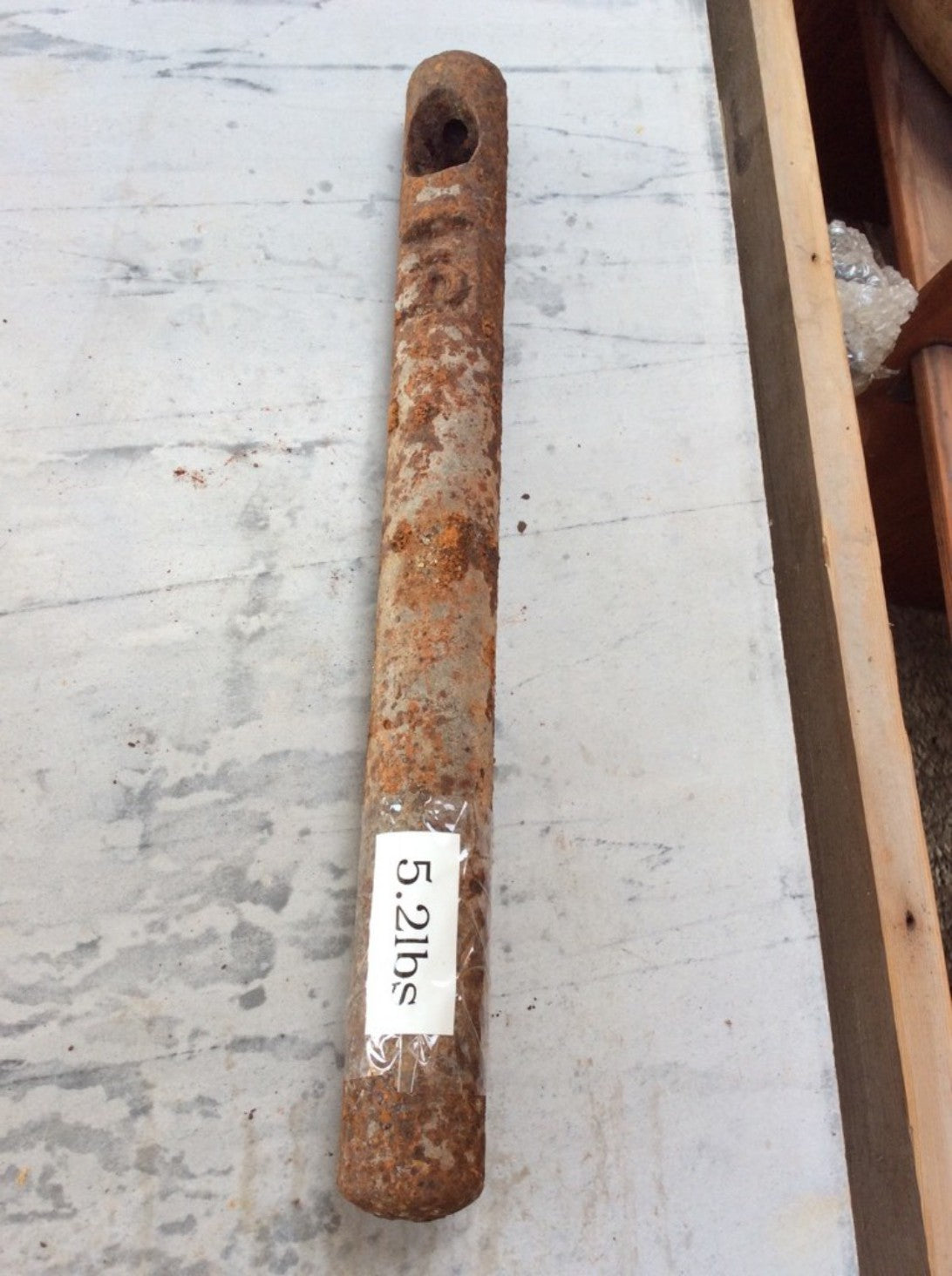 Salvaged 5 1/2 lb stamped old cast iron window sash weight