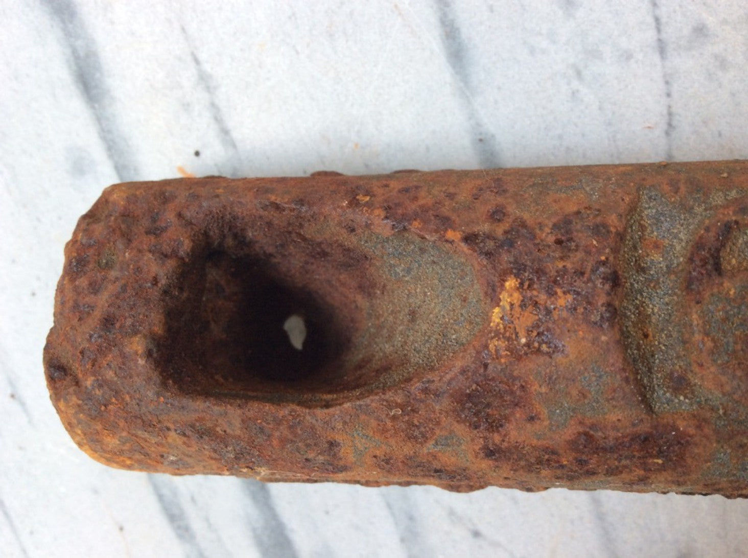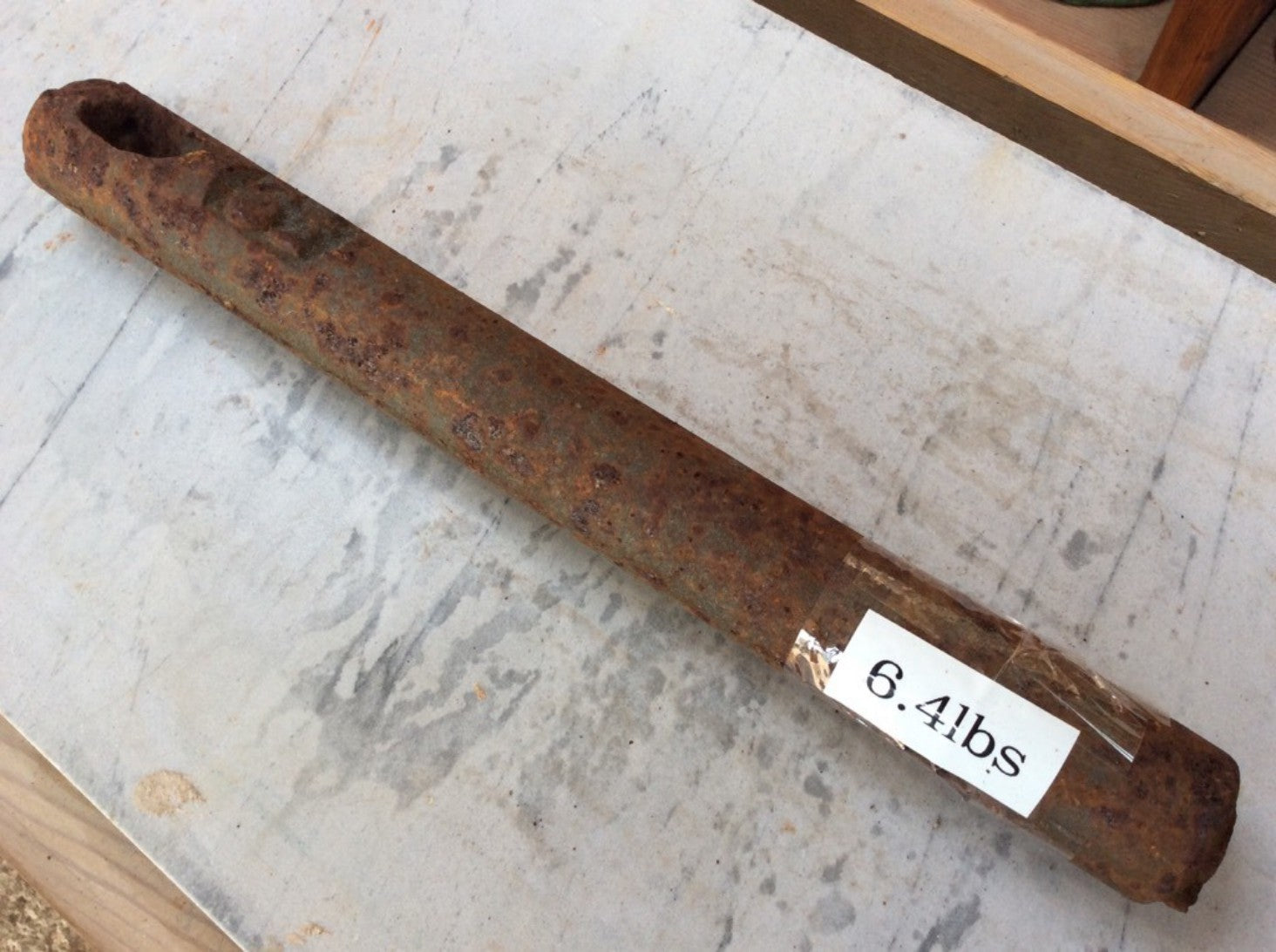 Salvaged 6 1/2 lb stamped old cast iron window sash weight