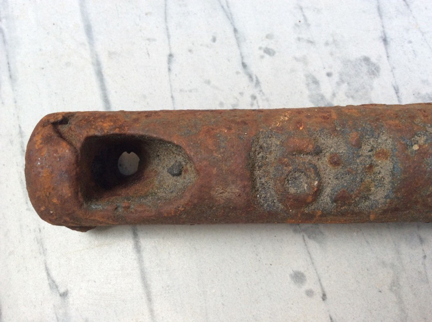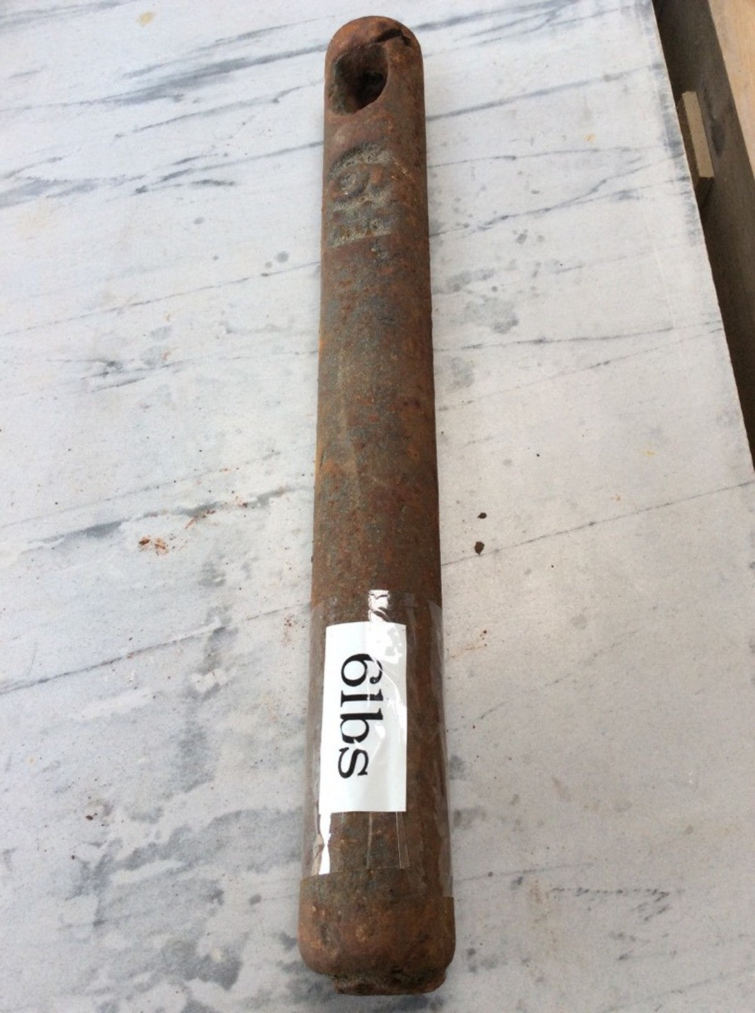 Salvaged 6 1/2 lb stamped old cast iron window sash weight