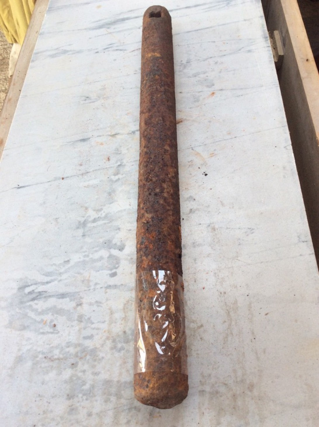 Salvaged 7 1/2lb stamped old cast iron window sash weight