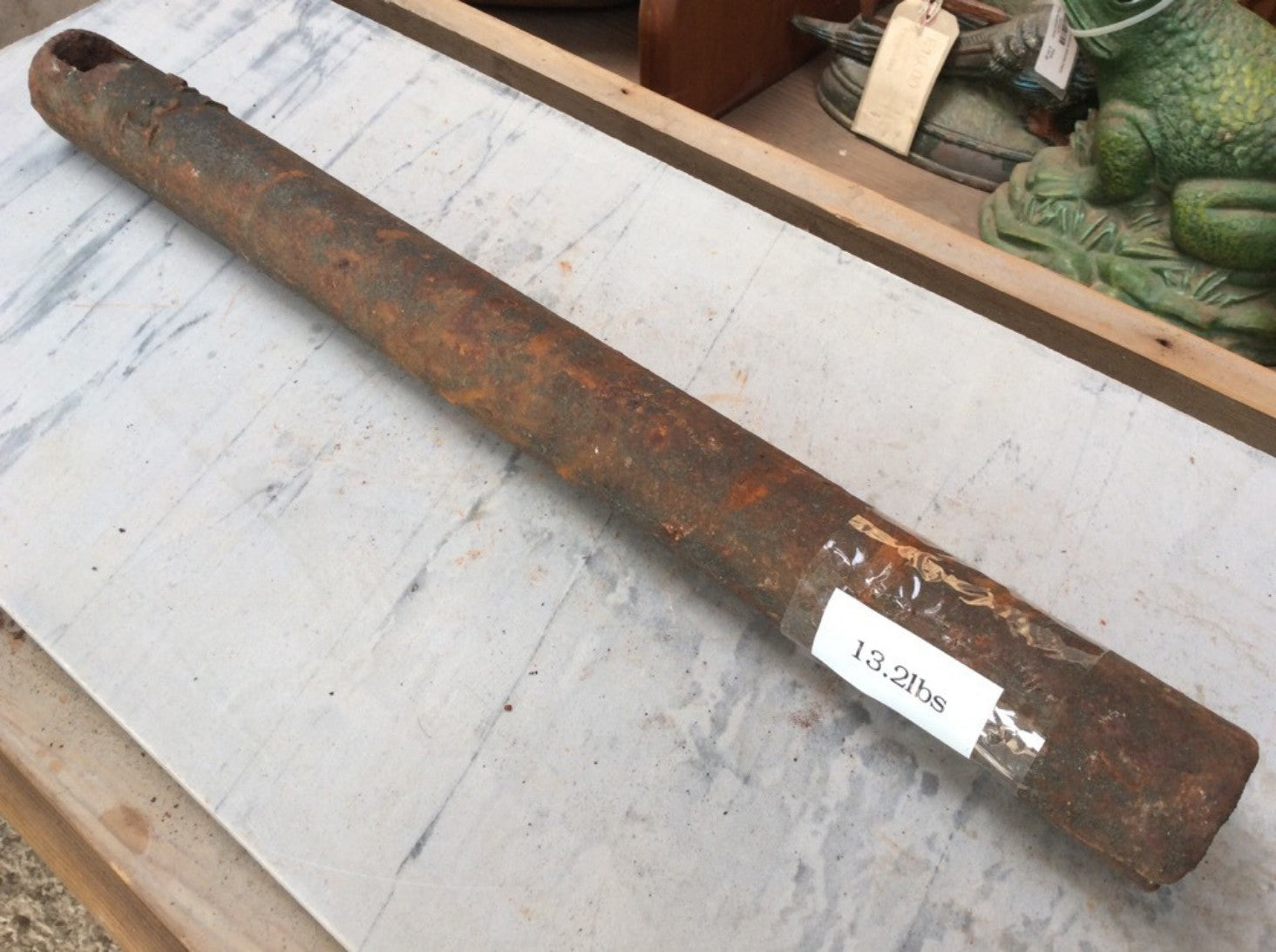 Salvaged Victorian Cast Iron Solid Round Window Sash Weight Stamped 13 1/2lbs