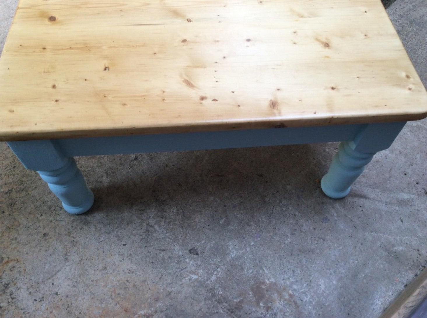 This large salvaged coffee table was once a kitchen table but the legs had been shortened over the years leaving it a bit low to sit at.