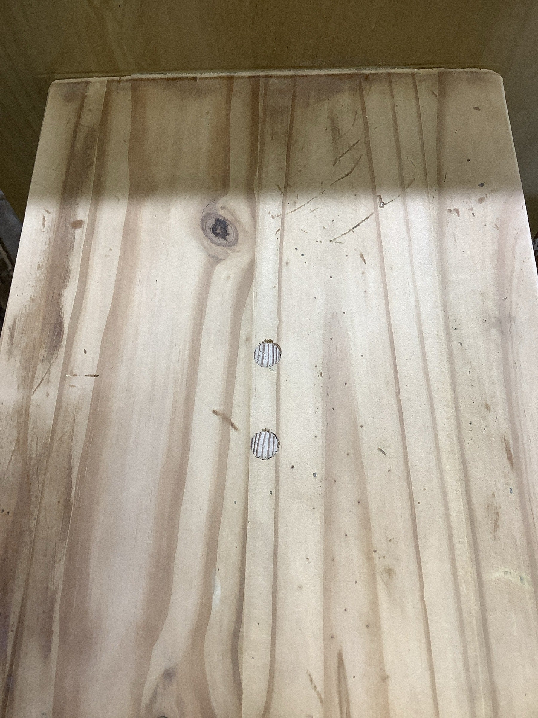 Also: Some old marks or scratches,would benefit from a sanding,and also has a bit of old woodworm damage that has been treated