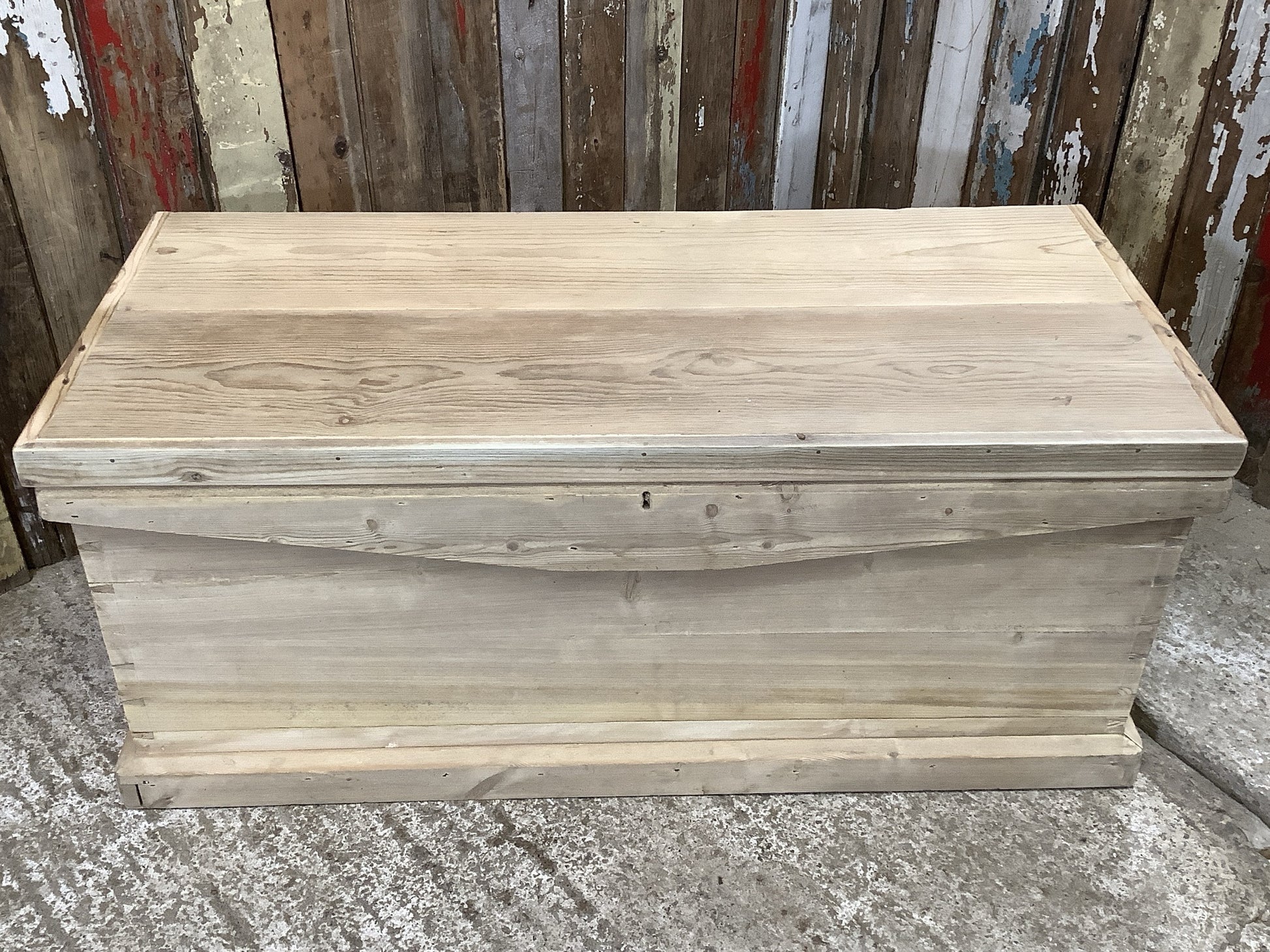 Has a 2 plank pine top with pine trim to finish it of and good strong hinges