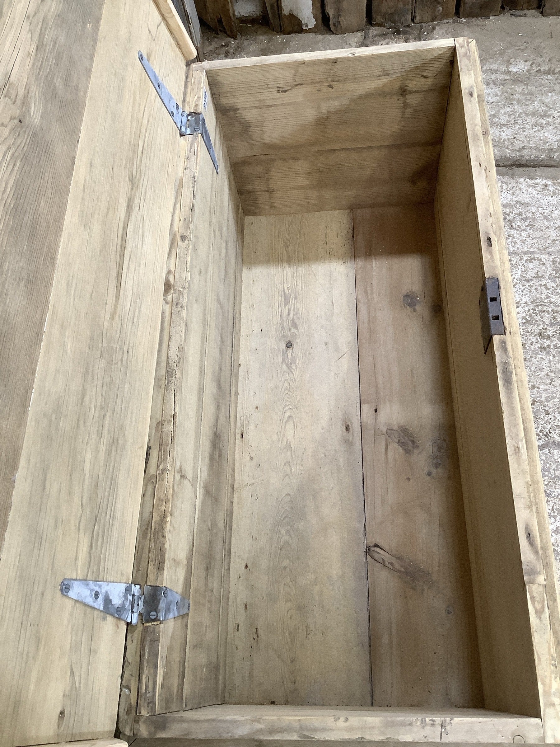 Large Victorian pine blanket box with heavy duty wrought iron handles